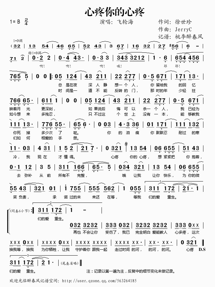 心疼你的心疼 简谱 曲谱 歌谱