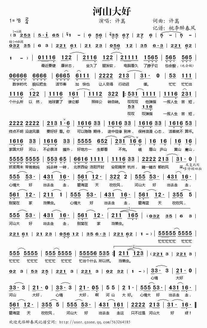 河山大好 简谱 曲谱 歌谱
