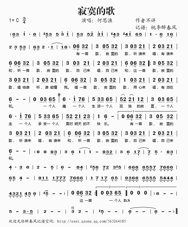 寂寞的歌 简谱 曲谱