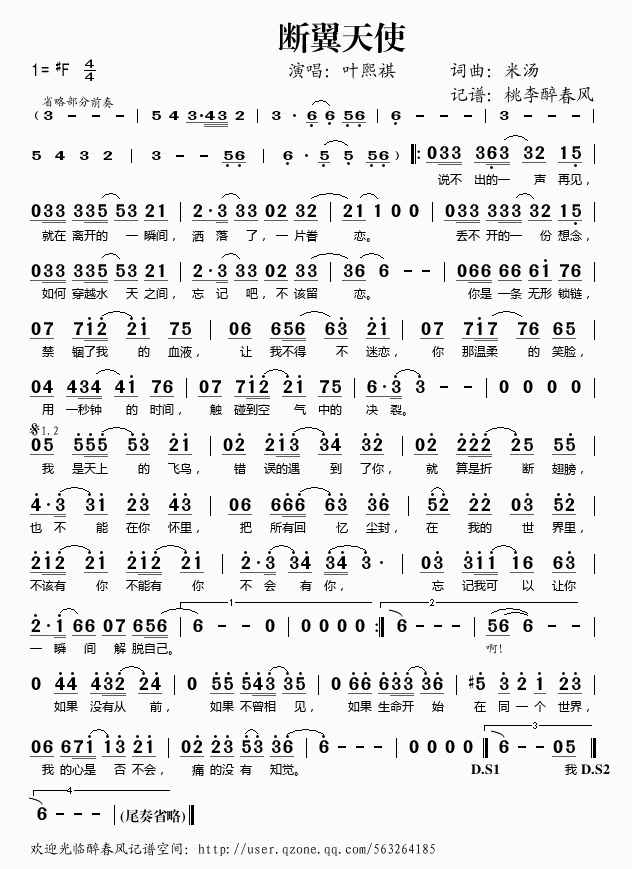 断翼天使 简谱 曲谱 歌谱