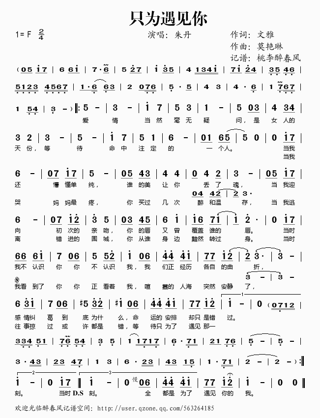 只为遇见你 简谱 曲谱 歌谱