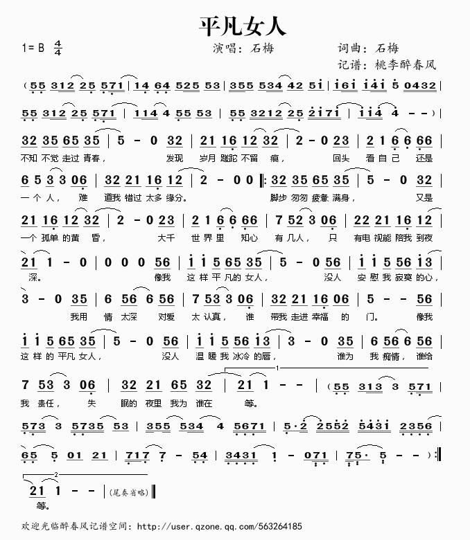 平凡女人 简谱 曲谱 歌谱