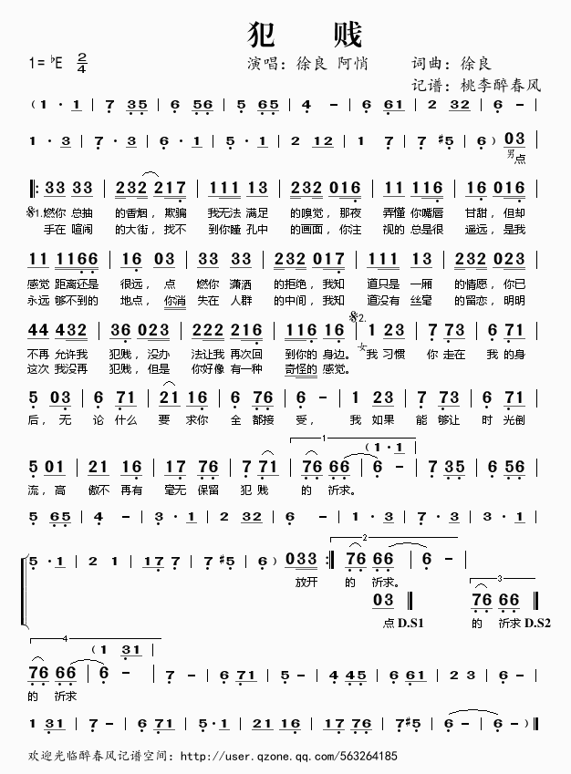 犯贱 简谱 曲谱 歌谱