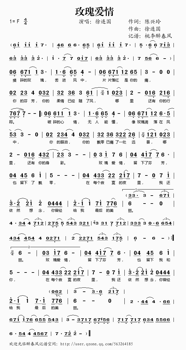 玫瑰爱情 简谱 曲谱