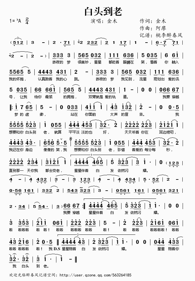 白头到老 简谱 曲谱 歌谱