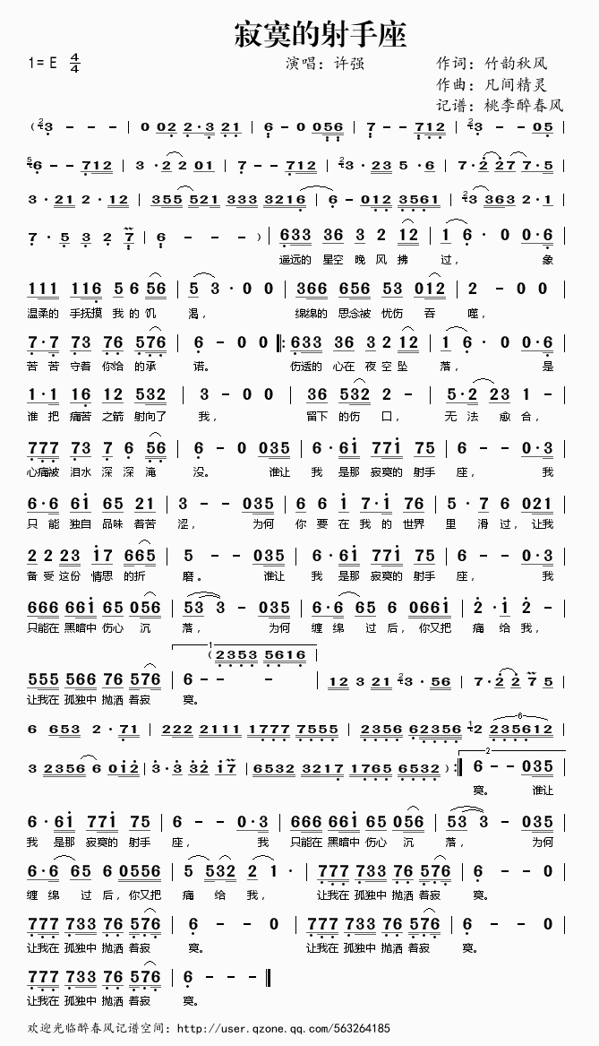 寂寞的射手座 简谱 曲谱 歌谱