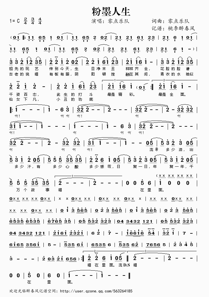 粉墨人生 简谱 曲谱 歌谱