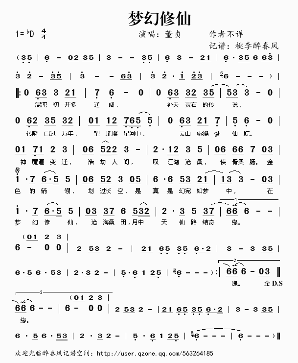 梦幻修仙 简谱 曲谱 歌谱