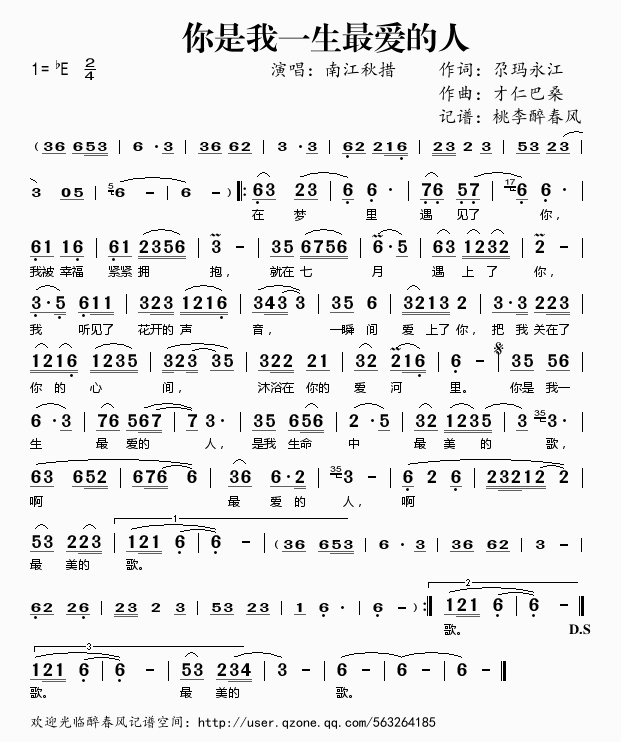 你是我一生最爱的人 简谱 曲谱 歌谱