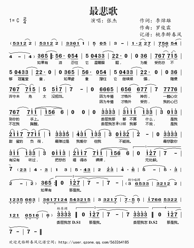 最悲歌 简谱 曲谱 歌谱