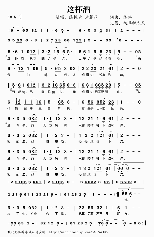 这杯酒 简谱 曲谱 歌词