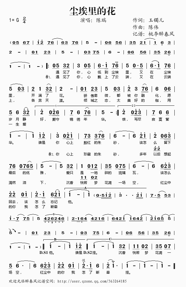 尘埃里的花 简谱 歌词