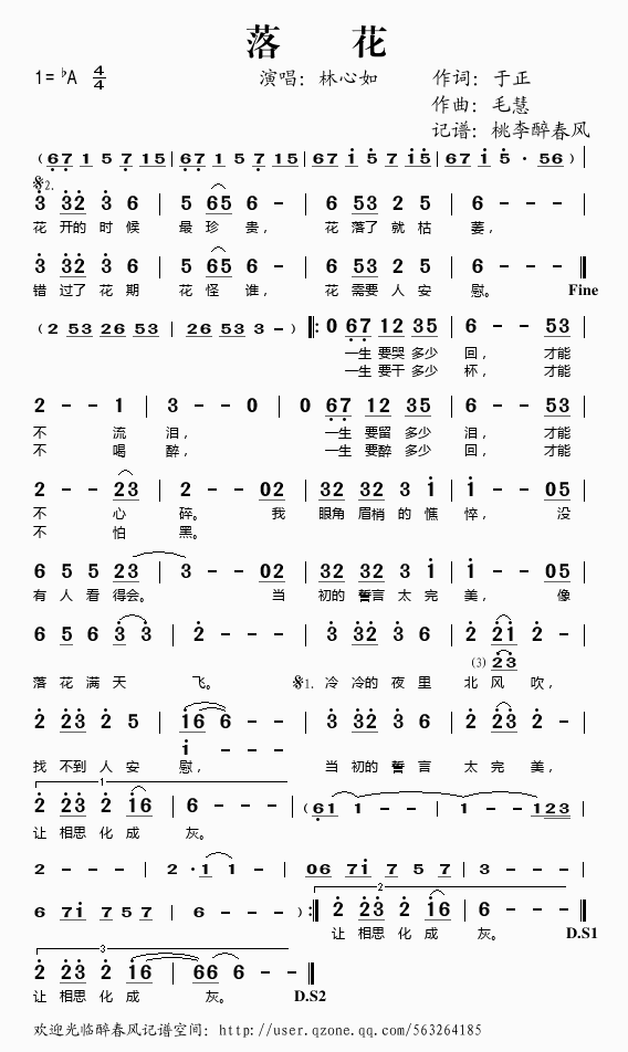 落花 简谱 歌词