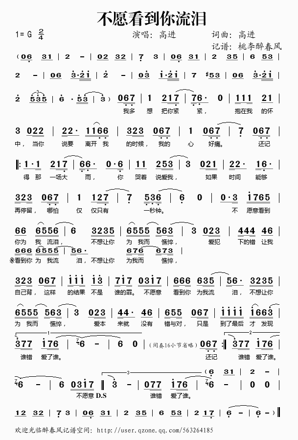 不愿看到你流泪 简谱 歌词