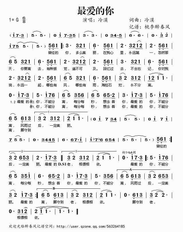 最爱的你 简谱 曲谱 歌谱