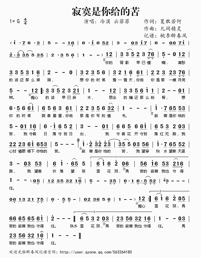 寂寞是你给的苦 简谱 曲谱 歌谱