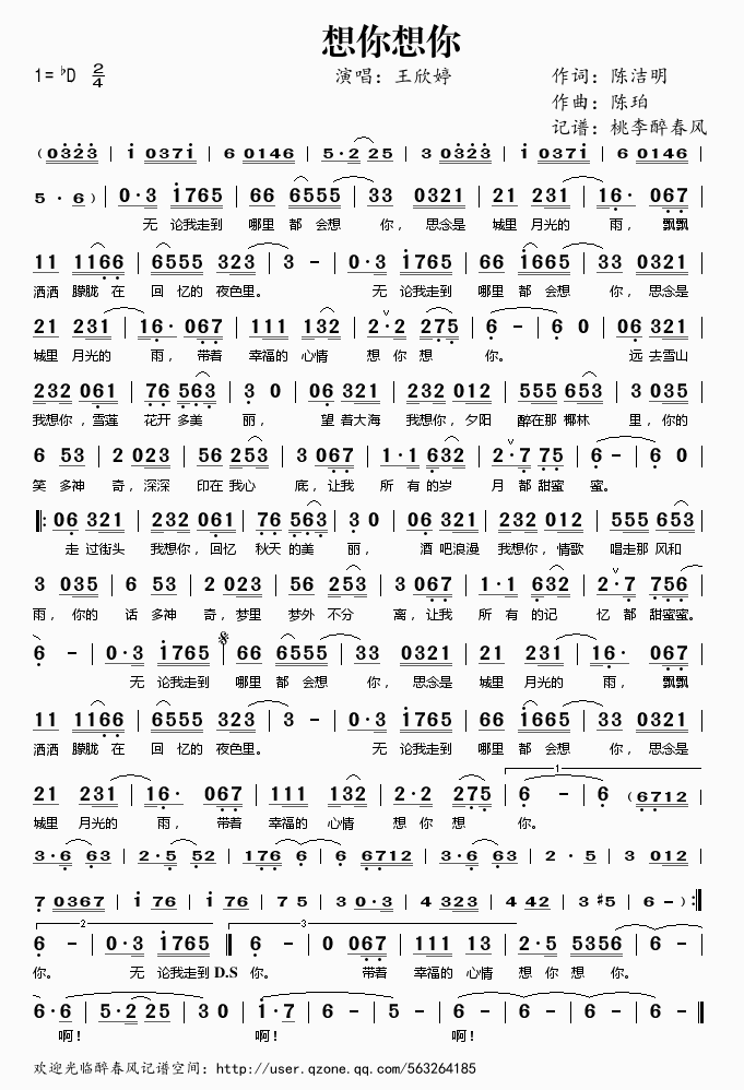 想你想你 简谱 曲谱 歌谱