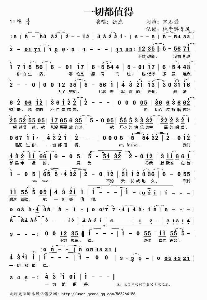 一切都值得 简谱 曲谱 歌谱