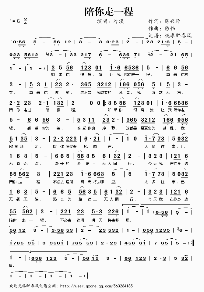 陪你走一程 简谱 曲谱 歌谱