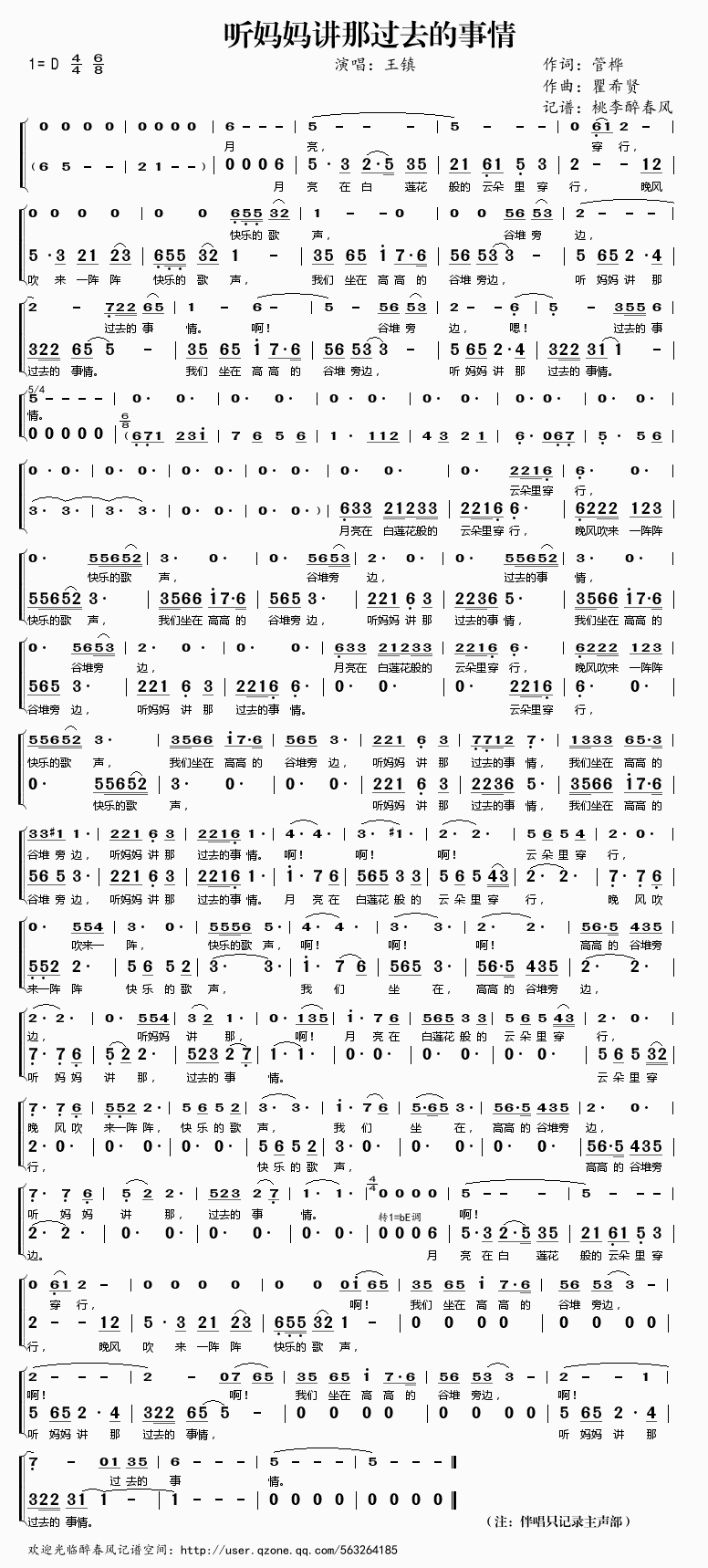 听妈妈讲那过去的事情 简谱 曲谱 歌谱