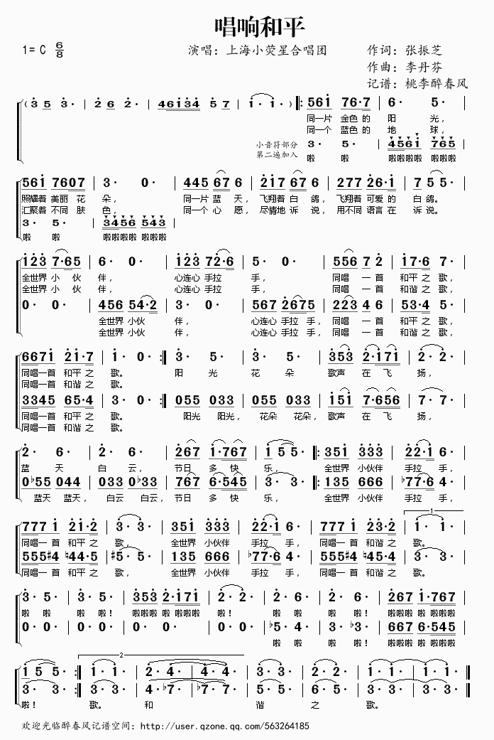 唱响和平 简谱 曲谱 歌谱