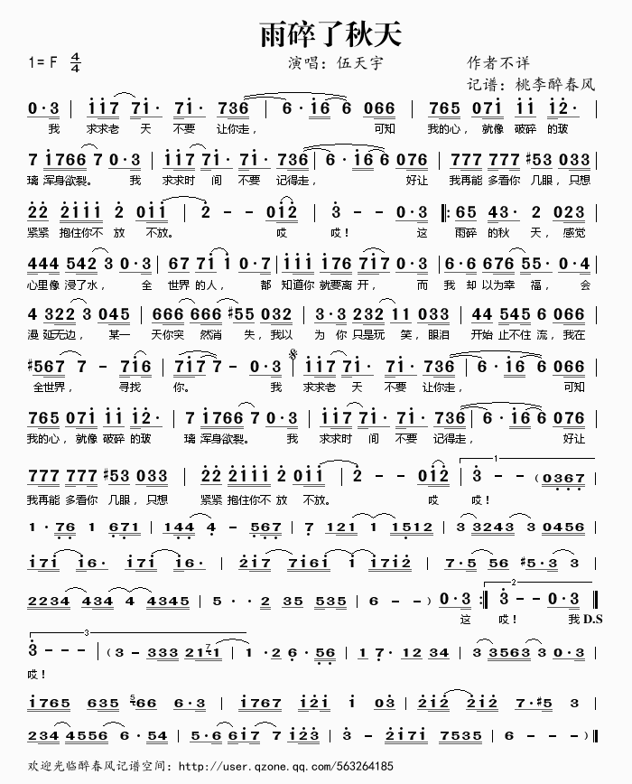 雨碎了秋天 简谱 曲谱 歌谱
