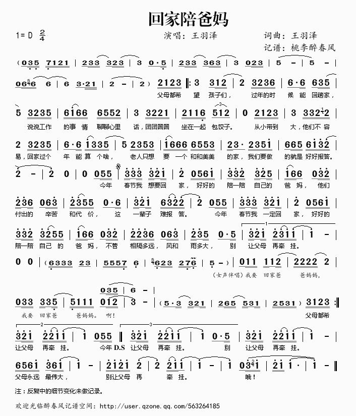 回家陪爸妈 简谱 曲谱 歌谱