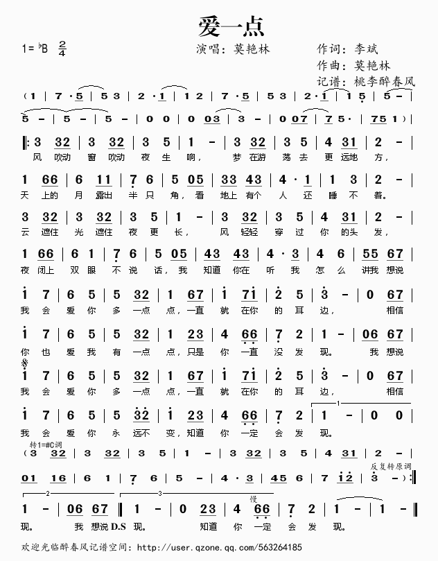 爱一点 简谱 曲谱 歌谱