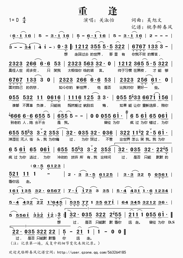重逢 简谱 曲谱 歌谱
