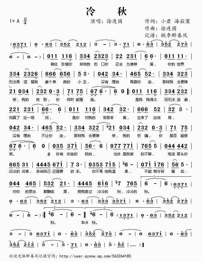 冷秋 简谱 曲谱 歌谱