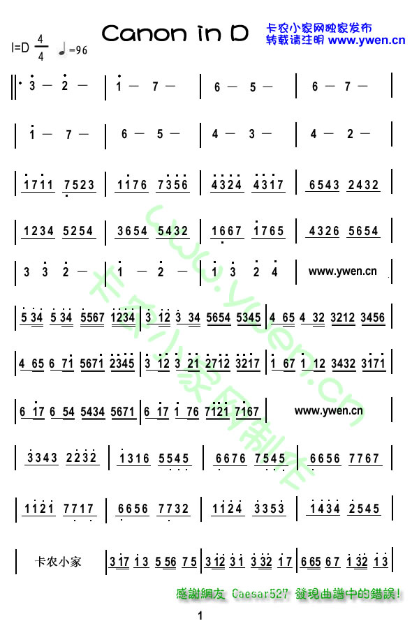 卡农 简谱
