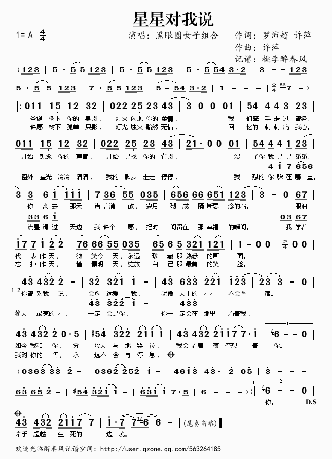 星星对我说 简谱 曲谱 歌谱