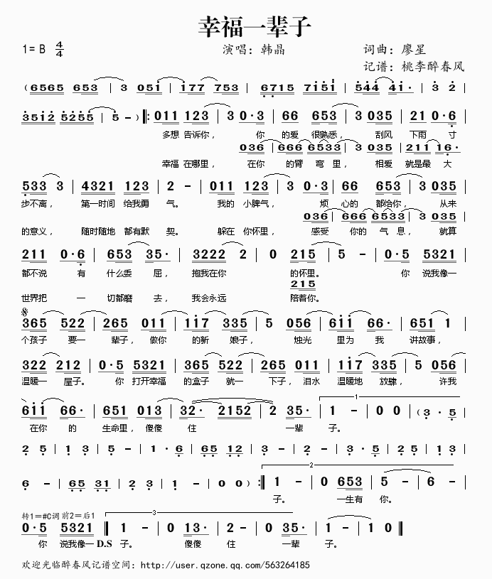 幸福一辈子 简谱 曲谱 歌谱