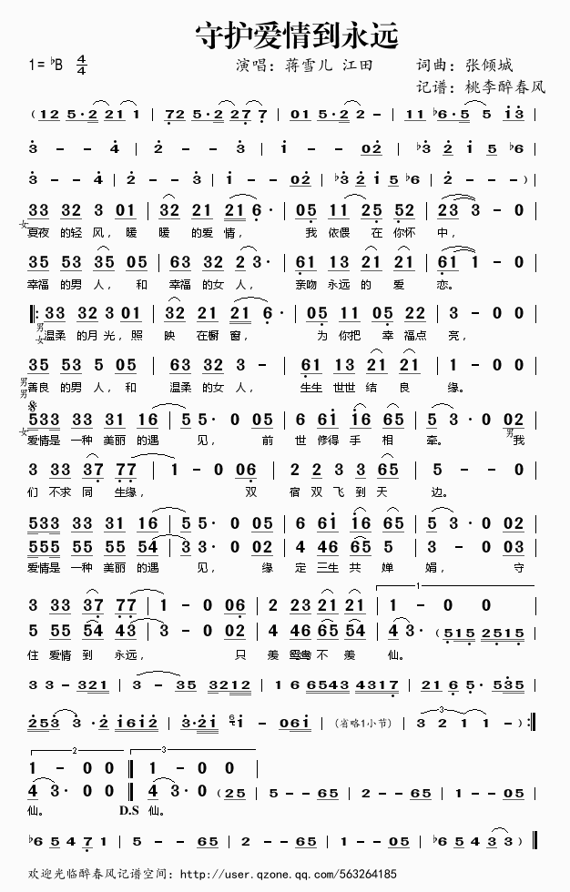 守护爱情到永远 简谱 曲谱 歌谱