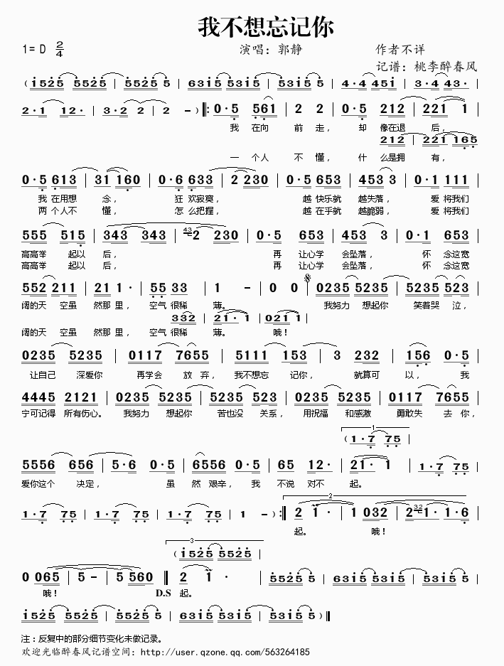 我不想忘记你 简谱 曲谱 歌谱