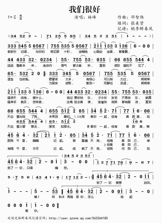 我们很好 简谱 曲谱 歌谱
