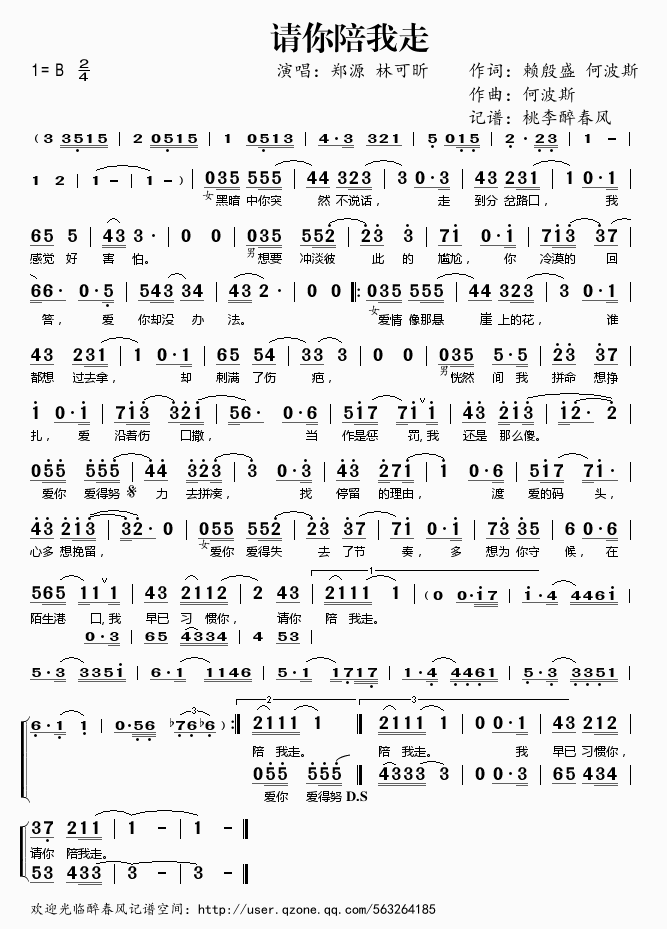 请你陪我走 简谱 曲谱 歌谱