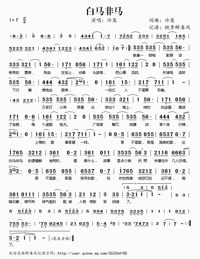 白马非马 简谱 曲谱 歌谱