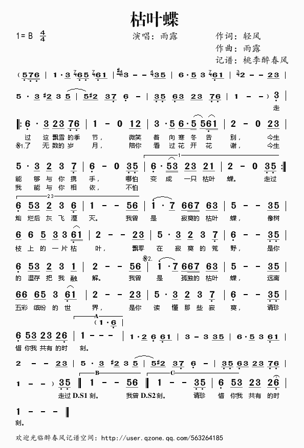 枯叶蝶 简谱 曲谱 歌谱