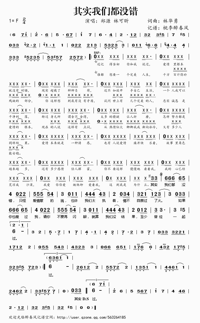 其实我们都没错 简谱 曲谱 歌谱