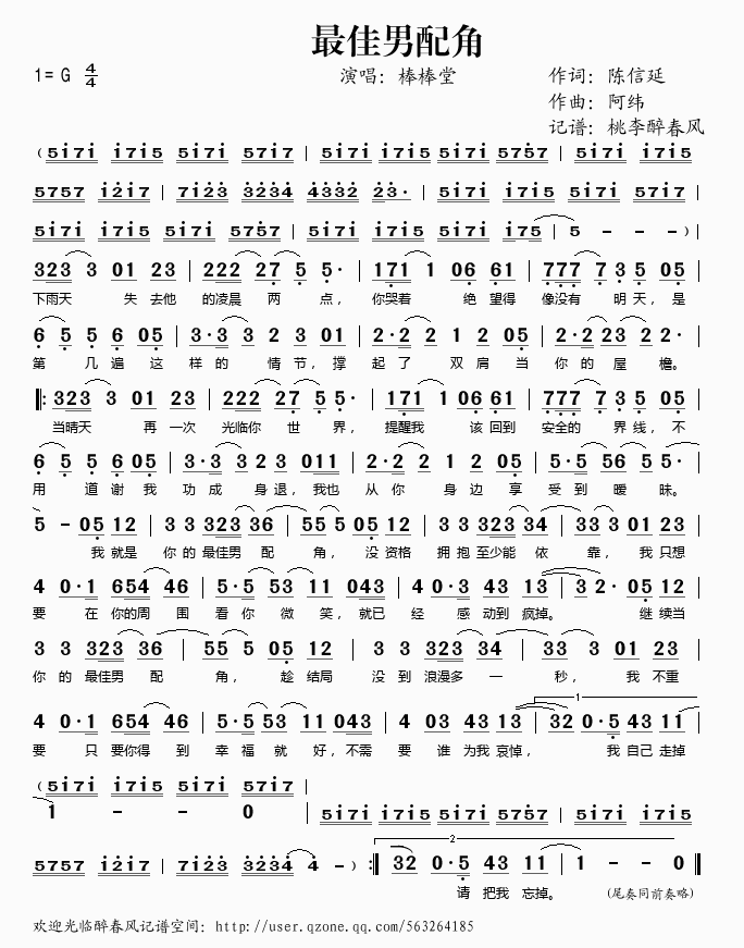 最佳男配角 简谱