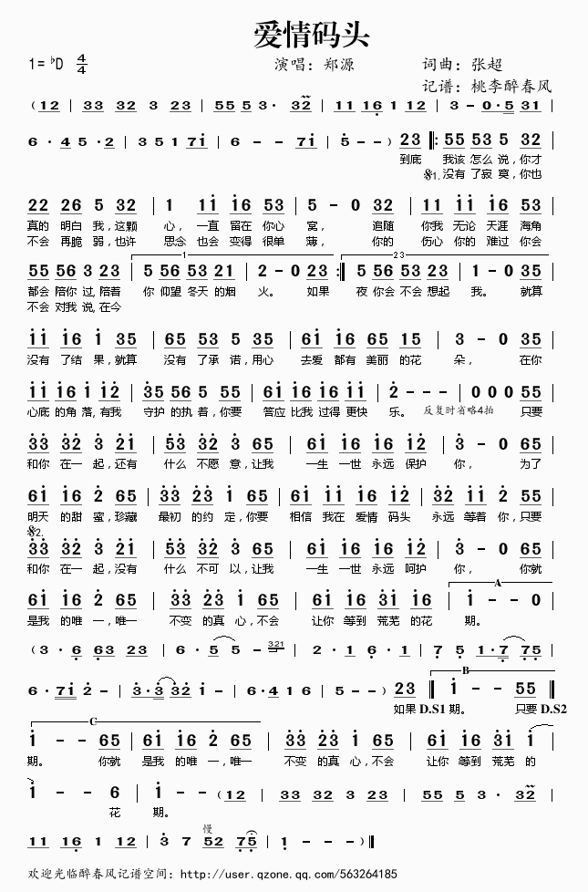 爱情码头 简谱 曲谱 歌谱