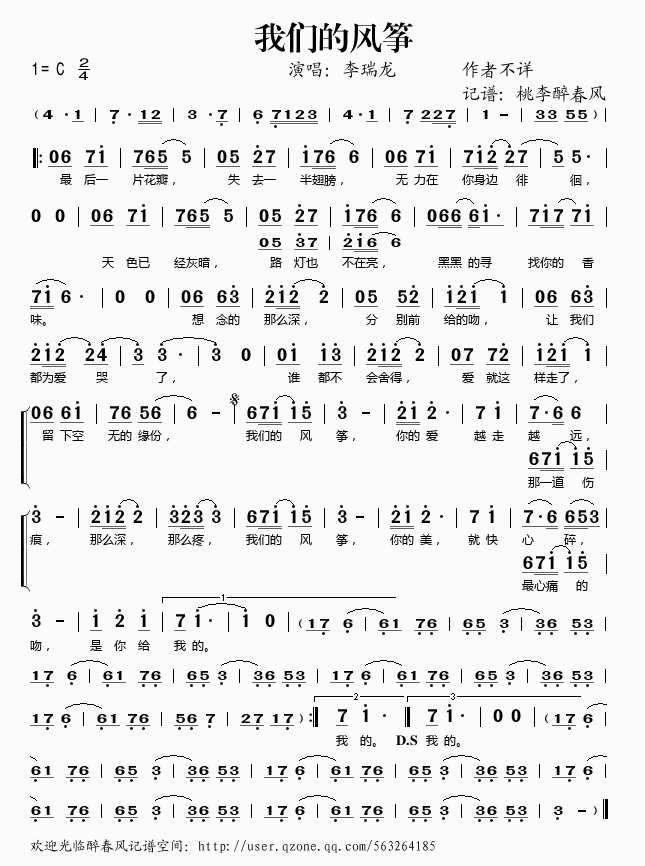 我们的风筝 简谱 曲谱 歌谱