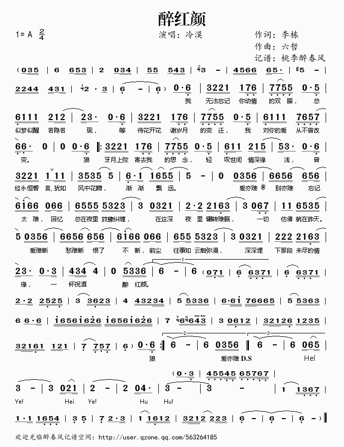 醉红颜 简谱 曲谱 歌谱