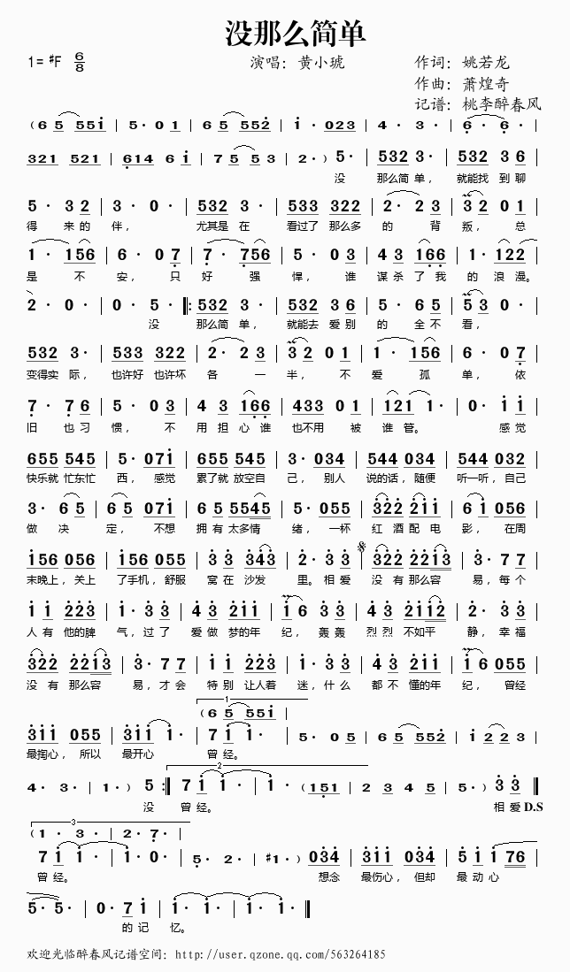 没那么简单 简谱 曲谱 歌谱