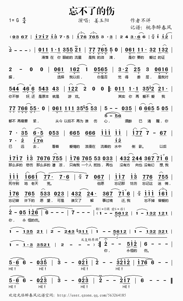 忘不了的伤 简谱 歌词