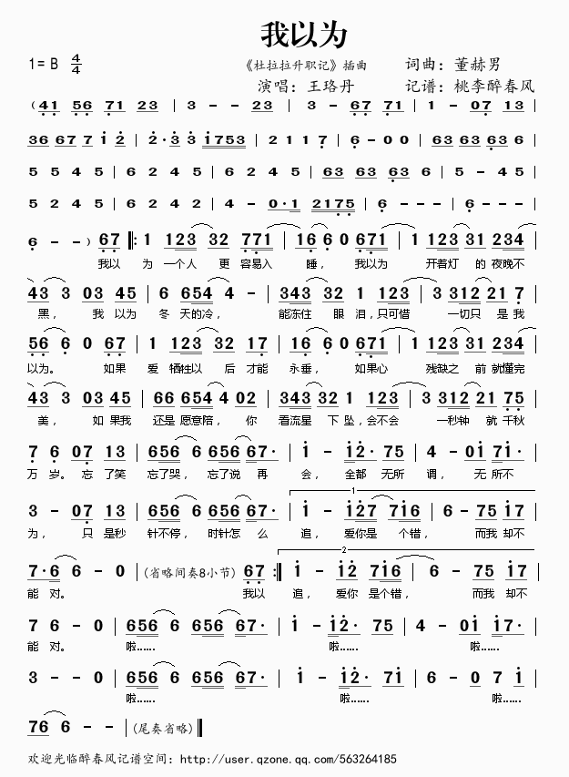 我以为 简谱 曲谱 歌谱