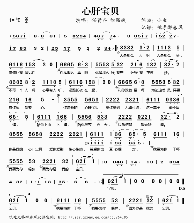 心肝宝贝 简谱 曲谱 歌谱
