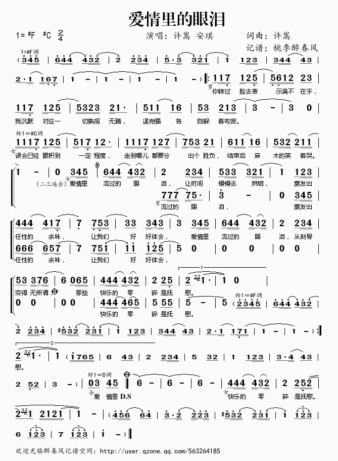 爱情里的眼泪 简谱 曲谱 歌谱