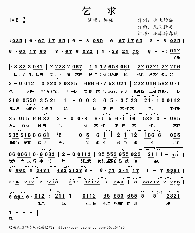乞求 简谱 曲谱 歌谱